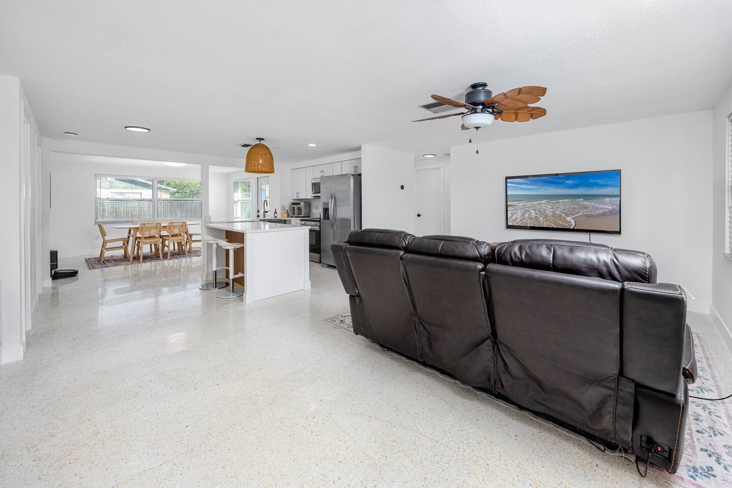 Located in a quiet neighborhood of Seminole, just minutes from the Gulf beaches, this fully furnished monthly rental offers a perfect blend of comfort and convenience. The property boasts three generously sized bedrooms, including a master suite with a luxurious king-size bed and two additional bedrooms, each furnished with comfortable queen-size beds. The updated kitchen is fully equipped, allowing guests to prepare meals with ease.