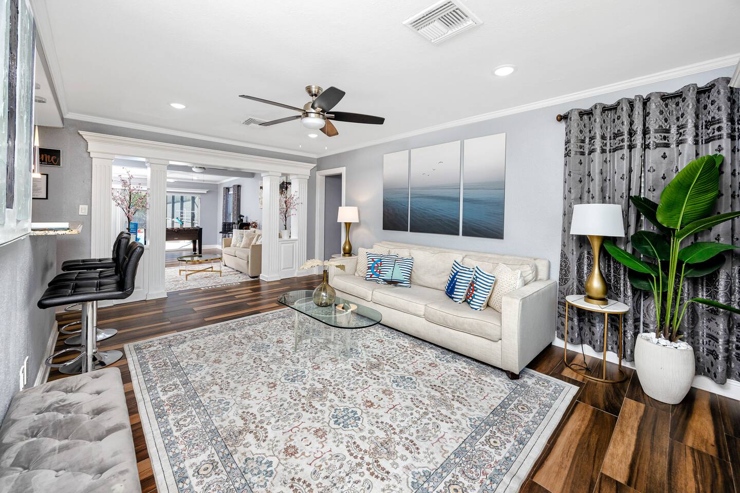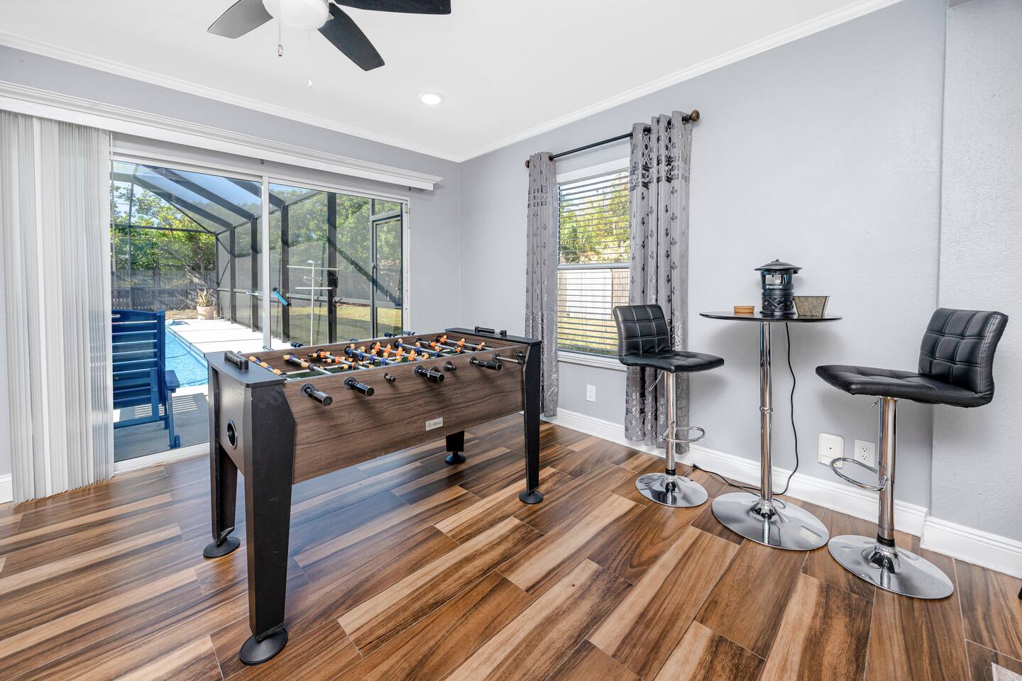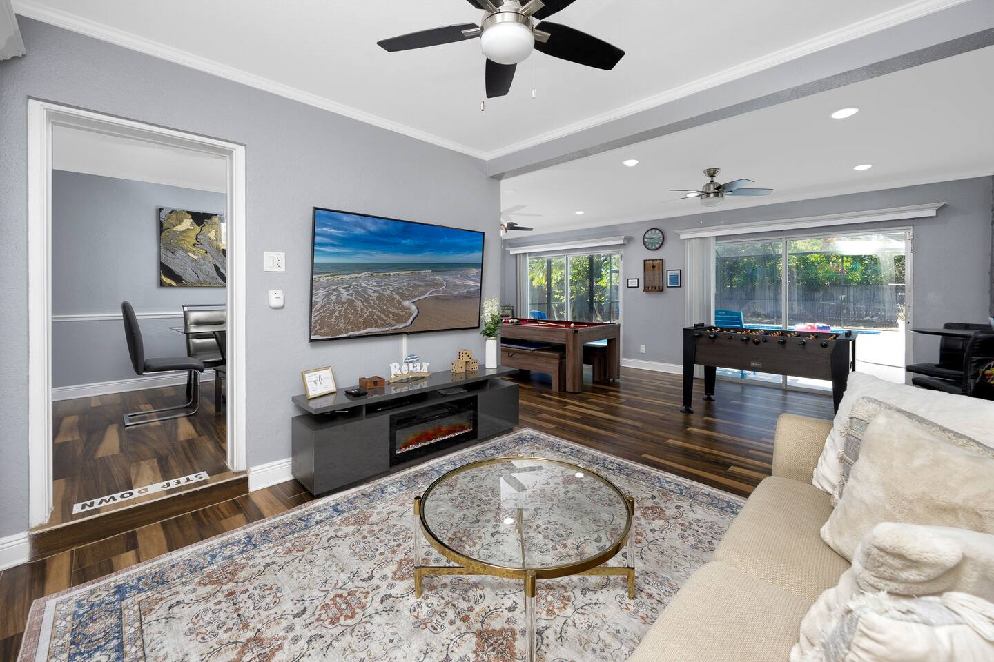 Experience the ultimate retreat in this hidden gem in Clearwater haven! This expansive 3-bedroom residence combines relaxation and entertainment, nestled just minutes from the stunning shores of Clearwater Beach. Standout amenities include a heated pool for year-round enjoyment and a theater room that transforms movie nights into an immersive adventure. For some friendly rivalry, challenge your companions to a game of billiards or foosball in the fully equipped game room.