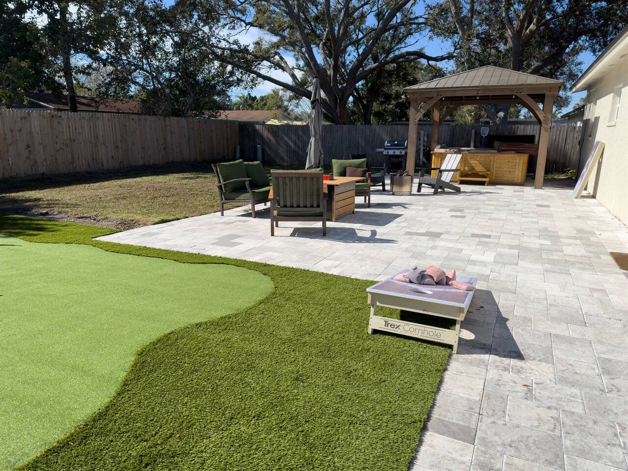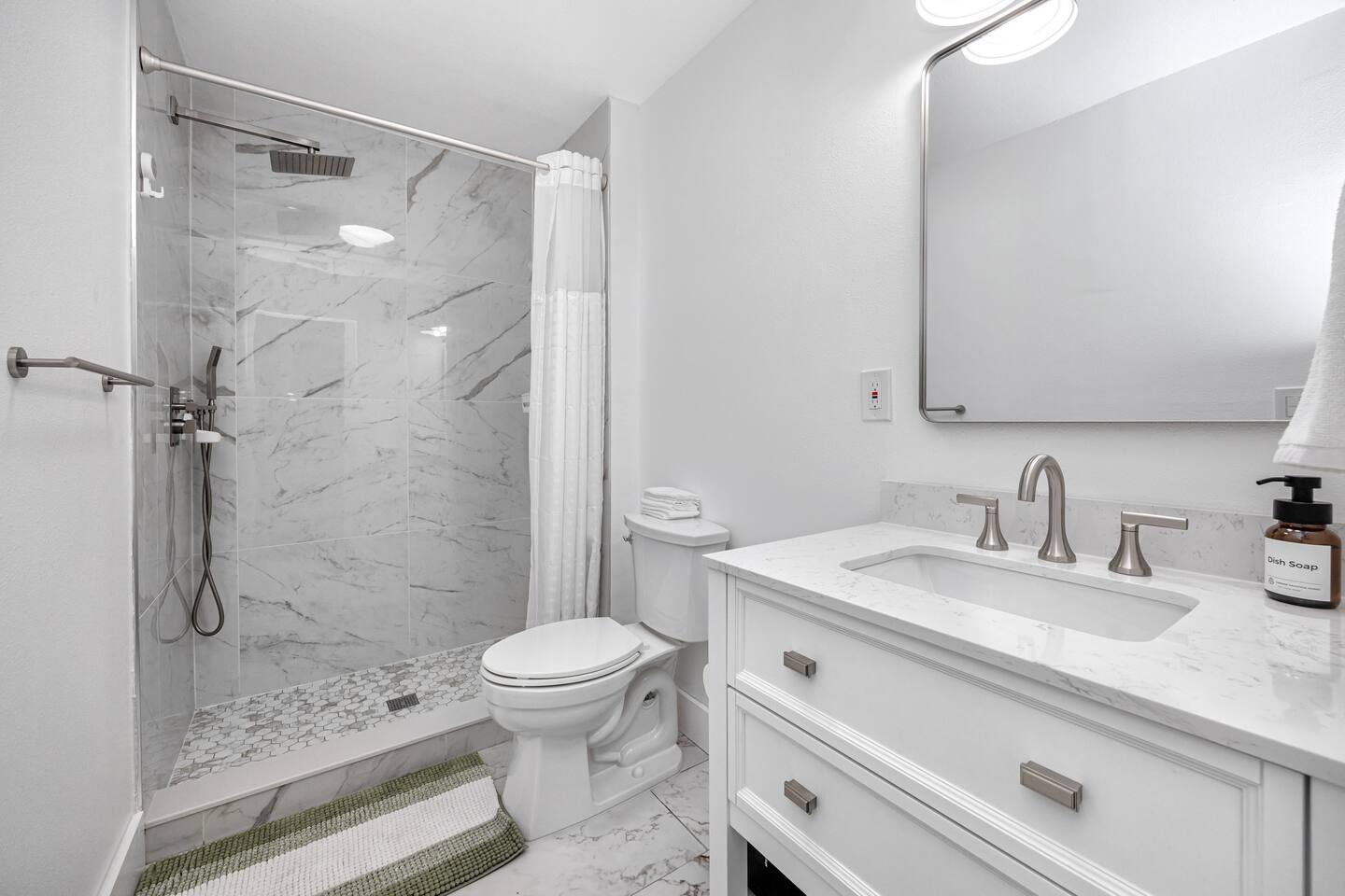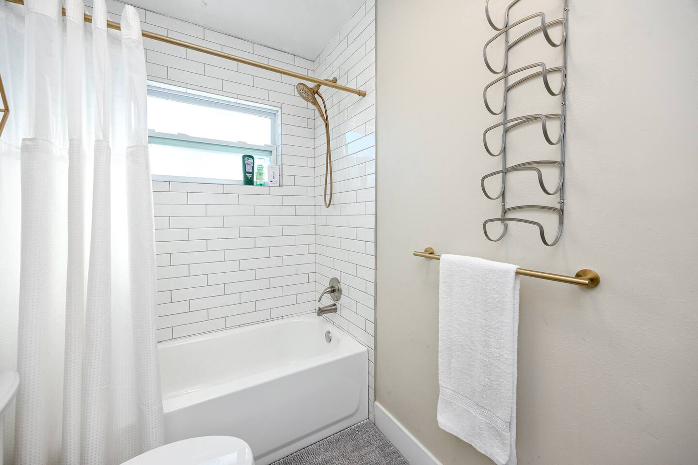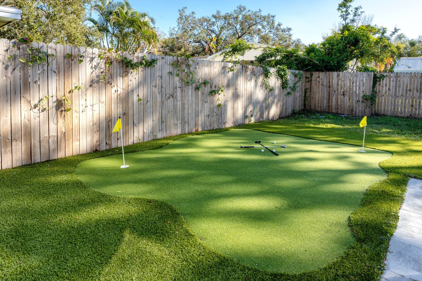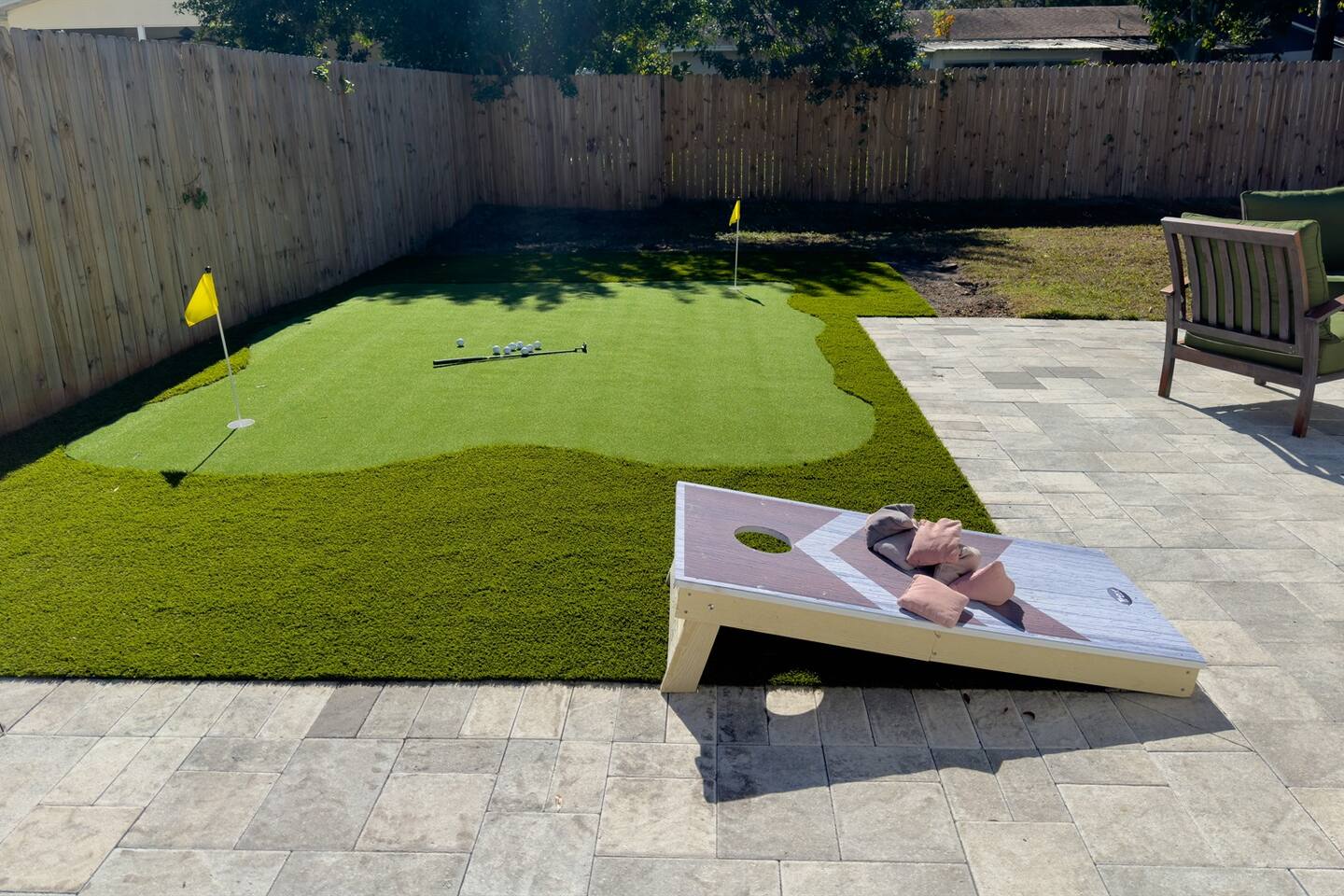 Step into your private backyard paradise, where adventure and relaxation collide: Soak your cares away in the luxurious hot tub under the stars36 Gather 'round the fire pit for s'mores and storytelling3 Challenge your family to a friendly game of mini-golf on your personal putting green Sleeping arrangement 3 bedrooms with a queen bed in each. There is also a pack and play Bathrooms There is a bathroom with standing rain shower by the entrance door There is also another bathroom with tub between the bedrooms